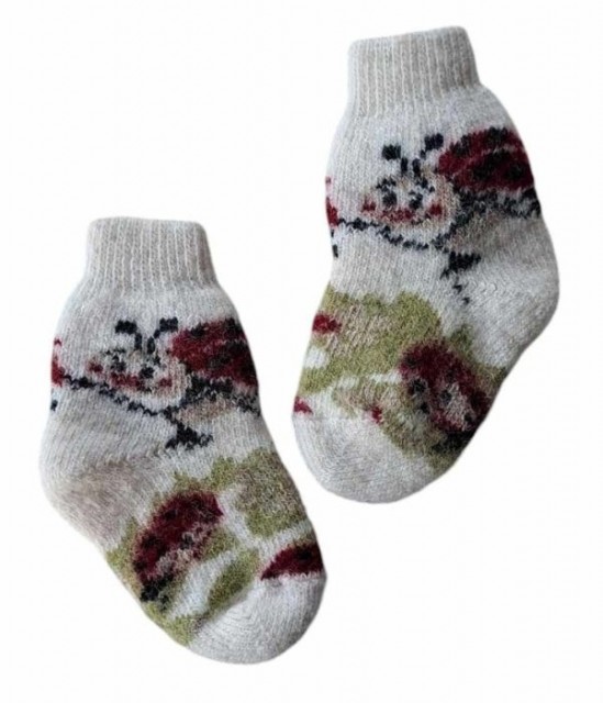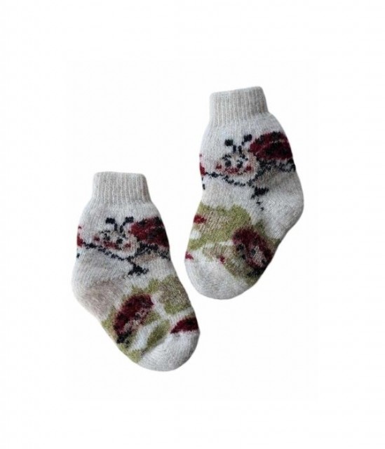 Tykke og varme ullsokker med marihønemotiv! Disse barnesokkene kombinerer høy komfort med et sjarmerende design som barna vil elske. Laget av varm ullblanding som holder små føtter varme, tørre og komfortable hele dagen – perfekt til bruk både hjemme og i barnehagen.