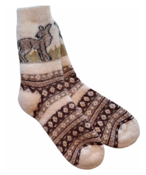 Disse morsomme og mønstrede ullsokkene til dame er laget i kløfri og behagelig ull som holder føttene varme gjennom hele dagen. Det lekne designet i brun og hvit gir sokkene personlighet, samtidig som de passer perfekt til både hyttekos, hjemmekvelder og kalde dager ute.