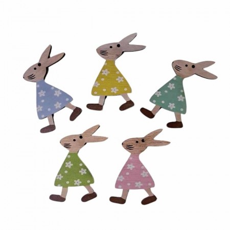 Små påskeharer i tre, 4×3,5 cm - perfekte som dekorative detaljer til påsken.