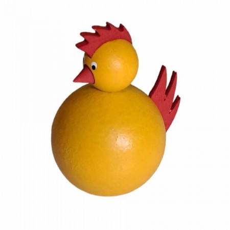 Gul påskehane i tre, 13 cm høy - perfekt påskepynt som gir liv til hjemmet ditt i påsken.
