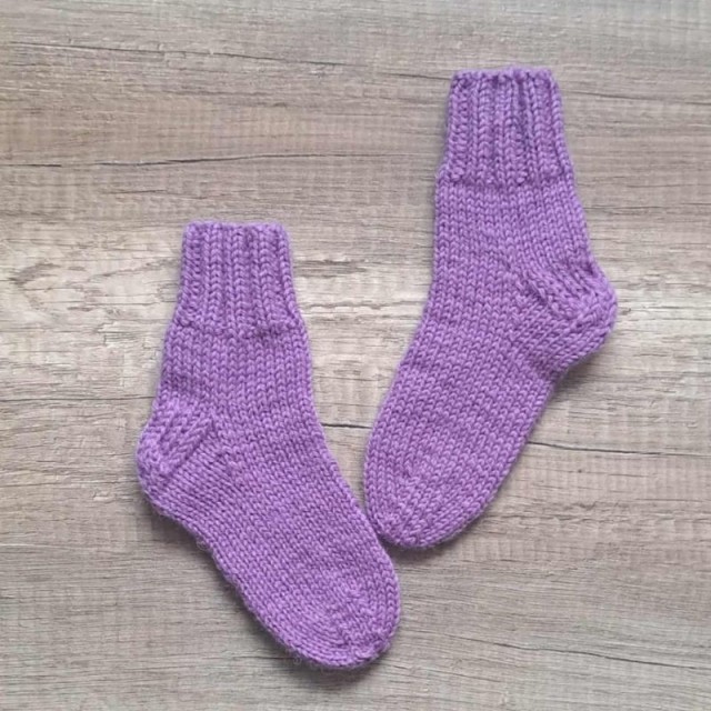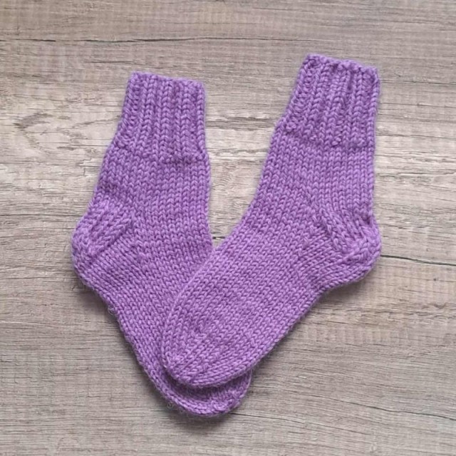 Hold små føtter varme og komfortable med våre ullsokker til barn i lilla. Disse sokkene er håndstrikket i 100 % ekte ull, som både varmer godt og lar huden puste, ideelle for lek, hverdag og kjølige dager.