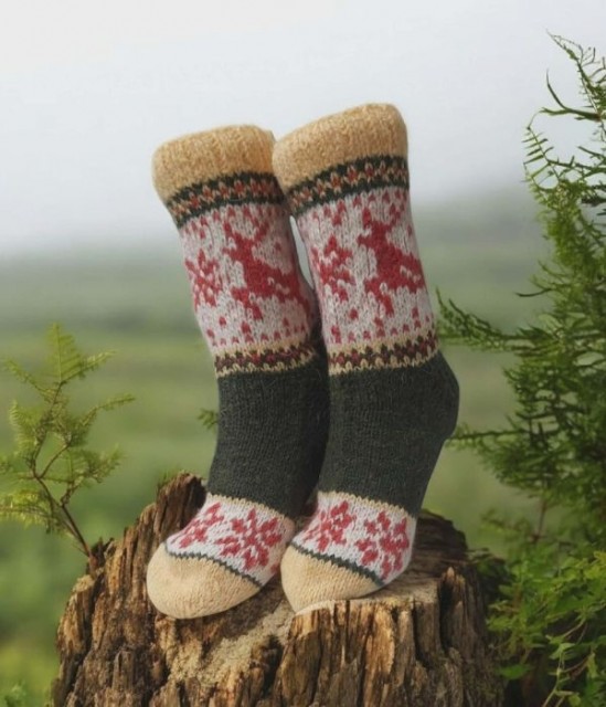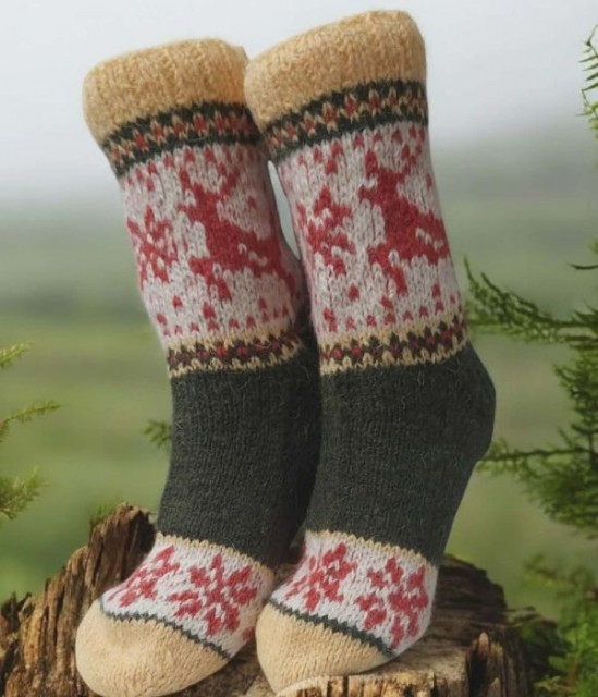 Disse håndstrikkede ullsokkene er laget med fokus på detaljer og høy kvalitet. Sokker i ekte ull holder føttene varme og komfortable hele vinteren, og puster naturlig slik at du unngår fuktighet.