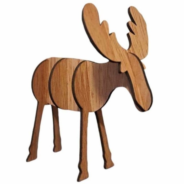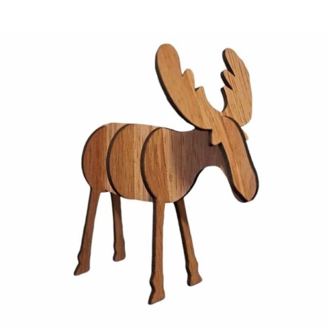 Elgen er laget i naturtre med synlig trestruktur, som gir et varmt og naturlig uttrykk. Den passer perfekt som julepynt på hylle, bord eller i vinduskarmen, og er også en koselig gaveidé i førjulstiden.