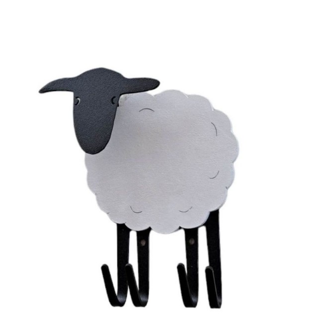 Dekorer veggen med en sjarmerende knagg formet som en sau i hvitt og svart. Laget av høykvalitets smijern og tre, kombinerer denne knaggen funksjonalitet og landlig sjarm - perfekt til gang, hytte eller barnerom.