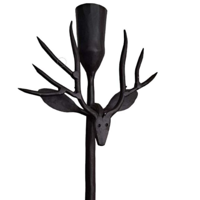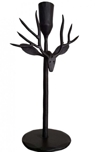 Sjarmerende lysestake for stearinlys med fint reinsdyrmotiv. Passer perfekt i skandinavisk interiør- hjemme, på hytta og i høytiden.