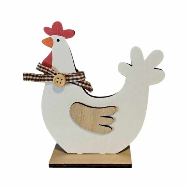 Påskepynt - påskehøne kan plasseres på ulike steder i hjemmet eller hytta for å skape påskestemningen. Påskedekorasjon - påskehøne er kun dekorert på venstre side, mens høyre side er i naturlige fargen. Påskedekorasjonen er laget av tre, som er miljøvennlig, lukfri og holdbar.