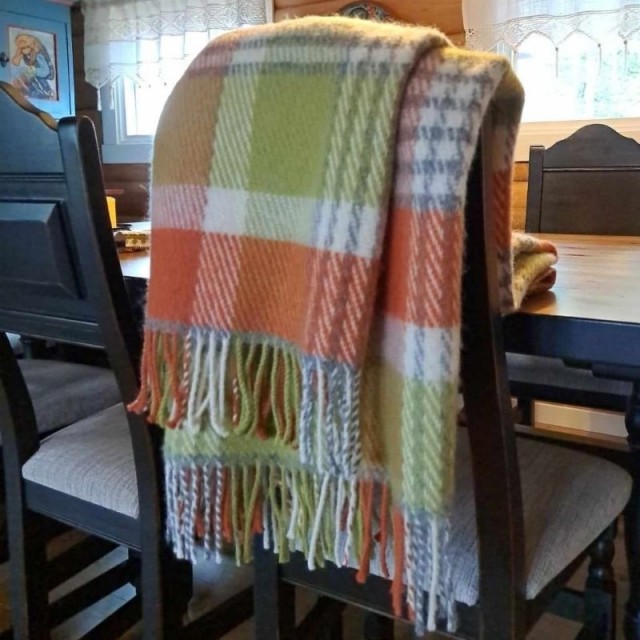 Dette store og myke ullpleddet med rutemønster i varme høstfarger gir både komfort og stil til hjemmet ditt. Perfekt for koselige stunder på kalde dager, og kan brukes som et elegant sengeteppe.