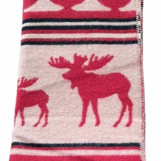 Dette vakre ullpleddet med et stilfullt elgemotiv gir en koselig atmosfære til hjemmet ditt. Elgmotivet tilfører et naturnær preg, og den røde fargen gir en ekstra dose varme og livlighet til rommet.