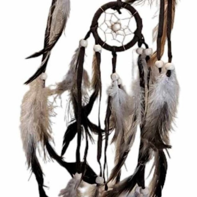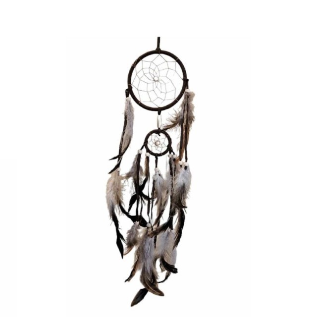 Denne brune drømmefangeren på 45 cm er dekorert med myke fjær og gir rommet ditt en varm og koselig atmosfære. Tradisjonelt brukt for å fange dårlige drømmer, fungerer den like godt som en stilfull og meningsfull interiørdetalj. Perfekt å henge på veggen i stuen, soverommet eller barnerommet.