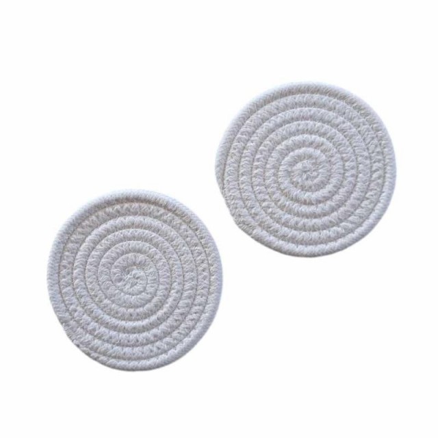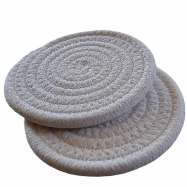 Dekorative glassbrikker i hvitt, laget av flettet materiale. Beskytter bordet mot varme, søl og ringer fra glass og kopper. Et praktisk og stilrent valg til både hverdag og selskap.