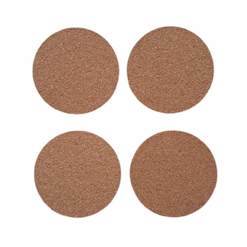Tynne og lette glassbrikker i naturlig kork - praktiske og dekorative underlag som beskytter bordet mot ringer og varme fra glass og kopper.