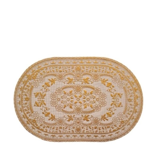 Praktisk og dekorativ oval bordbrikke i plast, størrelse 30×45 cm. Beige og gull gir en varm og stilren stemning til borddekkingen - perfekt til både hverdag, høytider og festlige anledninger. Den gullfargede overflaten gjør den også til et flott valg til julebordet.