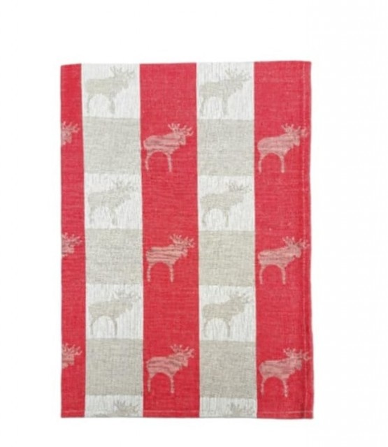 Det grå og røde elgemotivet passer perfekt til hyttestemning, vinter- og julekjøkken, og gir en varm og hjemmekoselig følelse. Bruk det selv eller gi det som en praktisk og sjarmerende gave.