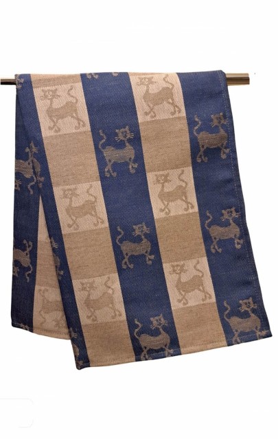 Dette kjøkkenhåndkleet er laget av en slitesterk blanding av lin og bomull. Det har god absorberingsevne, tørker effektivt og blir mykere ved bruk. Det sjarmerende kattemotivet i grå og blå toner gir en koselig og personlig detalj til kjøkkenet.
