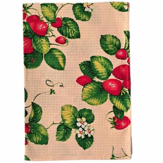 Dette dekorative kjøkkenhåndkleet i 100 % bomull kombinerer funksjonalitet med et sjarmerende design. Med et friskt og sommerlig jordbærmotiv bringer det et snev av landlig idyll inn på kjøkkenet året rundt!