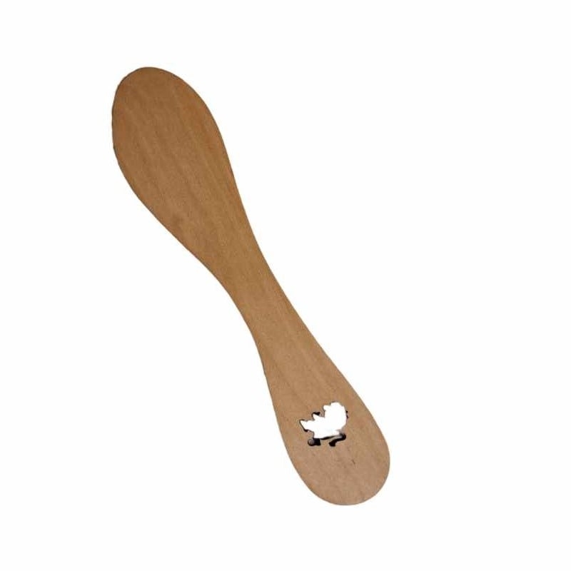 Denne sjarmerende smørkniven i tre er 15 cm lang og dekorert med et klassisk norsk trollmotiv – et lite stykke norsk folketro og humor. Kniven er både praktisk og dekorativ, og passer perfekt til å smøre brød ved frokostbordet eller på tur.