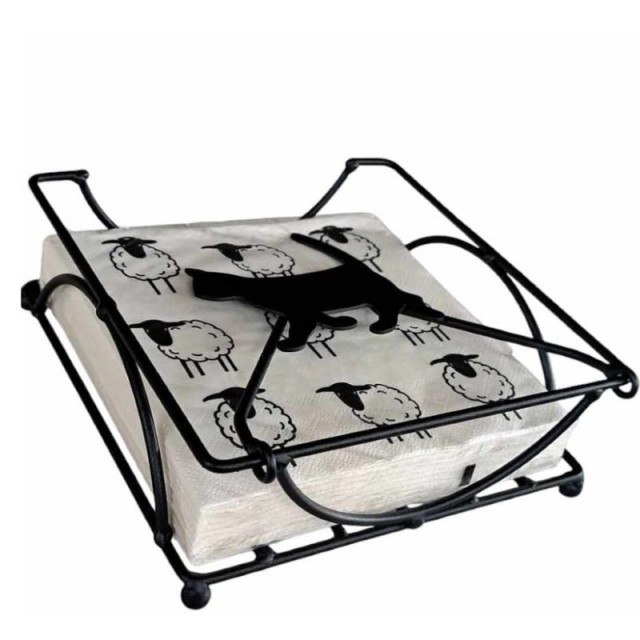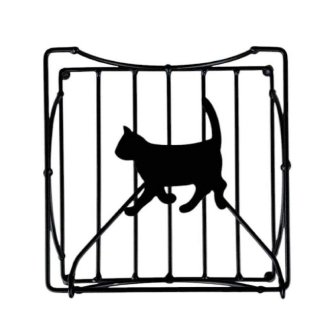 Hold serviettene samlet og lett tilgjengelige med denne stilige serviettholderen i svart smijern. Designet har en sjarmerende katt som gir et dekorativt preg, enten den står på kjøkkenbenken, spisebordet eller ute på terrassen.