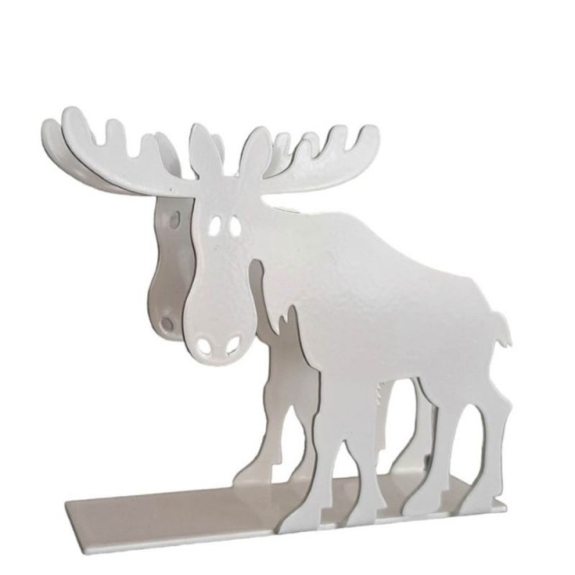 Serviettholder i smijern, formet som en elg og malt i hvitt. Den er både funksjonell og dekorativ - perfekt for å holde serviettene pent samlet og lett tilgjengelige under måltider. Med sitt sjarmerende elgmotiv passer den godt inn i både moderne og landlige interiørstiler, enten det er hjemme, på hytta eller i en fjellhytte. Kombiner gjerne med matchende telysholdere eller papirservietter med elgmotiv for en fin og koselig borddekking.