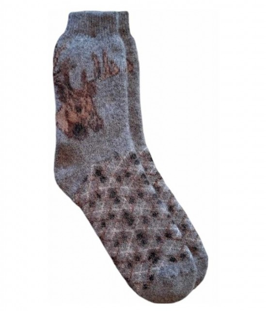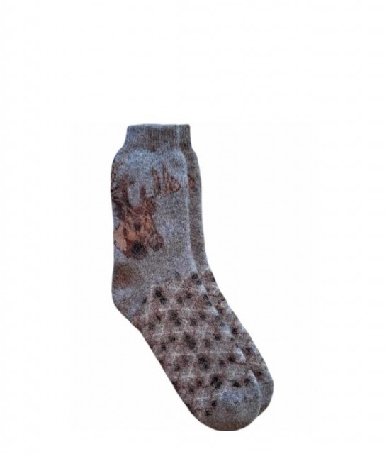 Tykke ullsokker i størrelse 43–45, dekorert med tradisjonelt reinsdyrmotiv i klassiske farger som grå og brun. Disse sokkene er laget av myk og varm ullblanding som gir både komfort og isolasjon – perfekt for hytteturer, hverdagsbruk eller som en hyggelig gave. Det nordiske designet passer både til innebruk og som et ekstra lag i vintersko.
