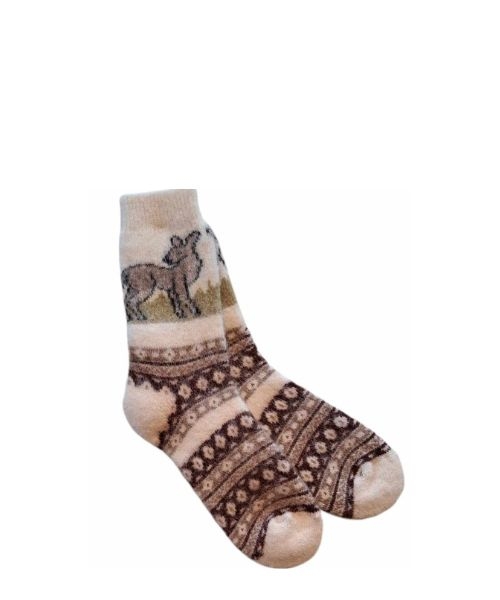 Disse morsomme og mønstrede ullsokkene til dame er laget i kløfri og behagelig ull som holder føttene varme gjennom hele dagen. Det lekne designet i brun og hvit gir sokkene personlighet, samtidig som de passer perfekt til både hyttekos, hjemmekvelder og kalde dager ute.